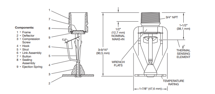 Distância Deflector pra o teto: 6 a 14 polegadas (152 a 356 mm) FM Global 2-0